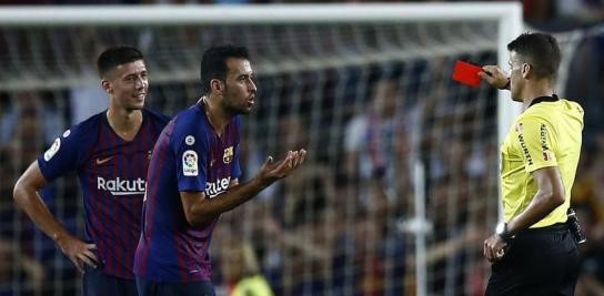 皮克也受到希尔-曼萨诺的处罚。第一次是巴萨曼联2018-19赛季赫罗纳(2-2)的直接红牌,