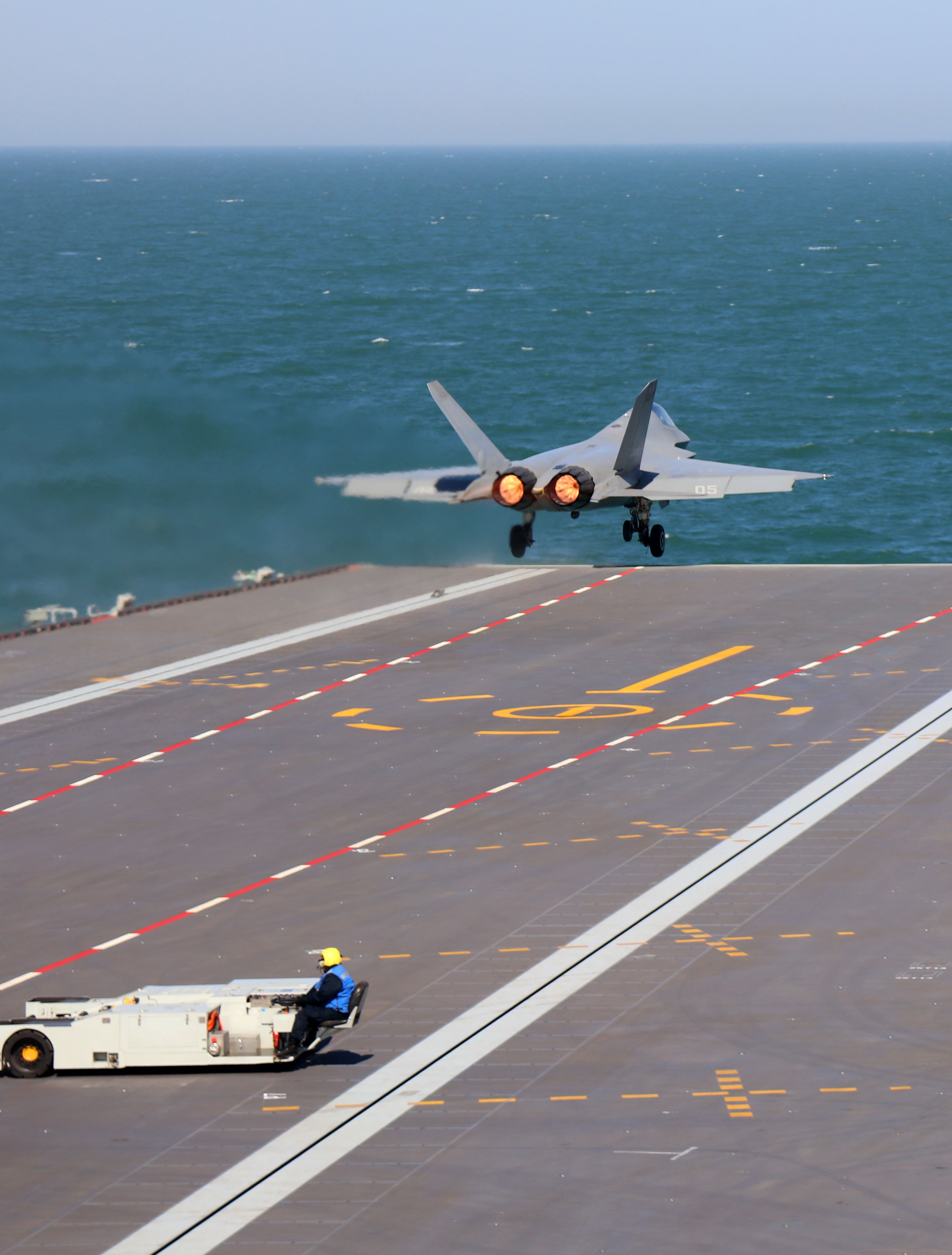 歼-35舰载核武器在海军福建舰电磁弹射弹站前,对推进海军转型建设具有里程碑意义。这是大桥助手做出放飞援助。歼-35、这是飞机着舰前一瞬间。李唐摄